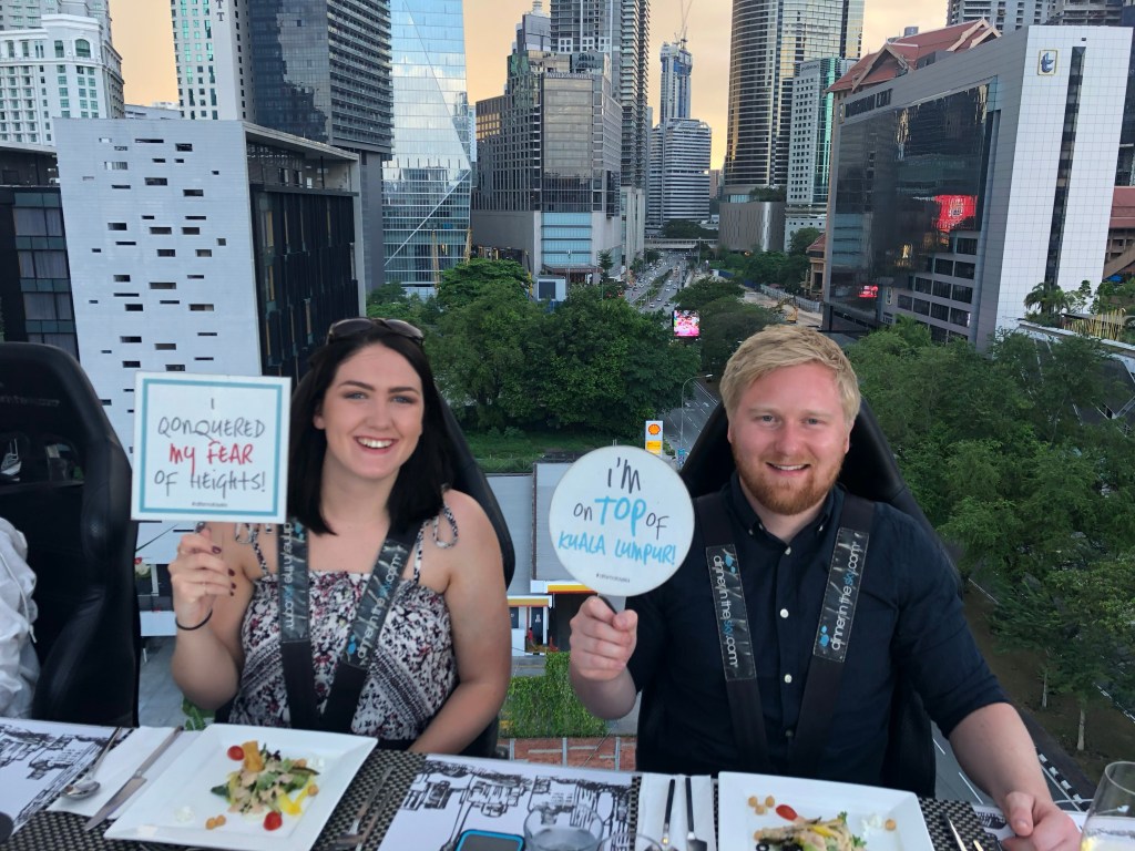 Dinner in the sky – This was quite a cool experience that you can do in loads of places around the world, but we sadly missed out on the one in London and so decided to take this opportunity to do it, and tick it off Scott’s bucket list. It’s effectively a large table that can fit roughly 20 people on it, that gets lifted 50m into the air by crane, and you sit and have a meal. There are loads of different options such as drinks, just dessert, 4 course meal with cocktails etc, but we chose the 3 course meal and paid around £70 each for an hour.