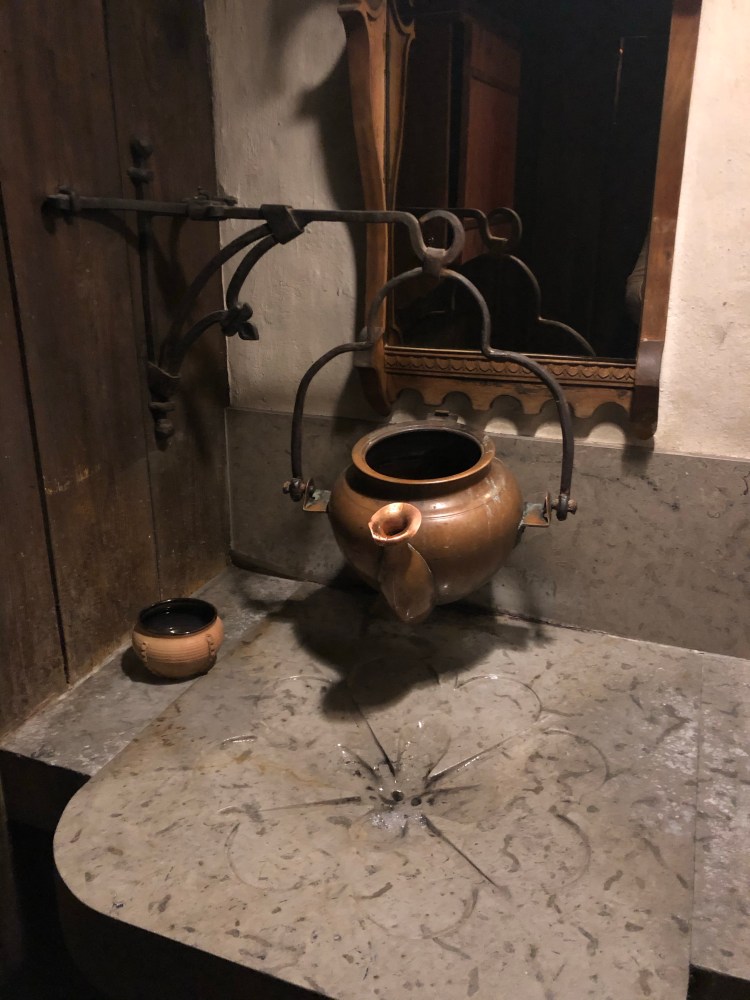 The food in Estonia was amazing and we didn’t have one bad experience with food here. Even the burger we got from Mad Murphy’s Irish pub, at the end of a long alcohol-fuelled night, tasted amazing (although this might have been the beer talking). Our first meal in Tallinn was at Olde Hansaa, an authentic medieval dining experience. The waiters are all in costume and remain in character for the whole evening, calling you ‘my honourables’ and referring to cutlery as ‘weapons’. The whole place was lit with just candlelight, which makes choosing your food from the menu a bit of a challenge, and even the toilets are designed to fit in (below). Scott had bear (brown bear from Estonia) and I had wild boar neck – the food was lovely but you go for the experience!