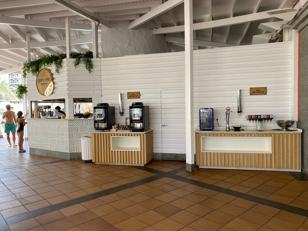 We are Manchester United fans and were chuffed to see that this place had a sports bar. It was a really cool area underground with screens and a couple of arcade games. The problem was, the people who were running it had literally no idea what they were showing or who would know. We asked a few times if the Man United game would be shown and one lady questioned if this was the Spanish league…! After a while of looking, it appeared the premier league wasn’t being shown that day so we managed to just stream it on our phone and sit out in the sun instead (a huge positive was the WiFi strength and reach here!). The sports bar isn’t part of the all inclusive package either so I guess we ended up better off upstairs with free drinks.