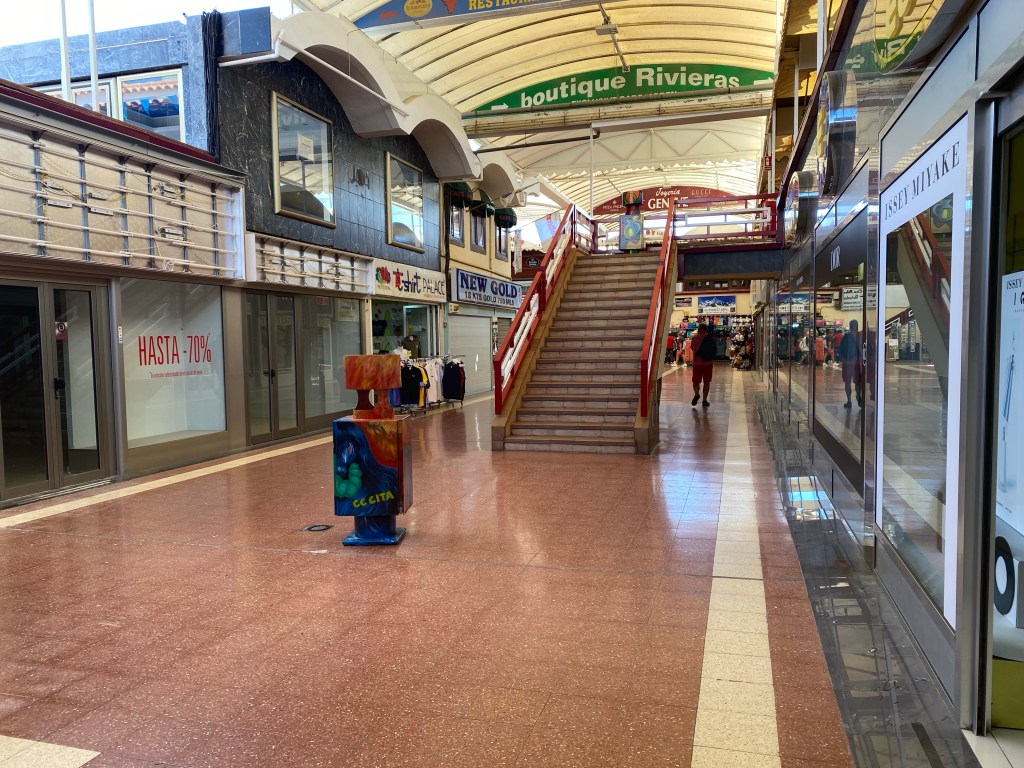 The location of the resort was okay – about a 20 minute walk from Maspalomas beach. Alternatively, there was a free shuttle bus which we knew when we booked so we brought the pram with us and her car seat just in case we needed them. We decided to walk the first time and ended up in an area that looked on the maps to be the centre of town, with a shopping centre called Cita. If you end up anywhere near this area, turn around and walk away. It’s a weird area, like an indoor market of shops, most of which were closed or selling souvenirs.