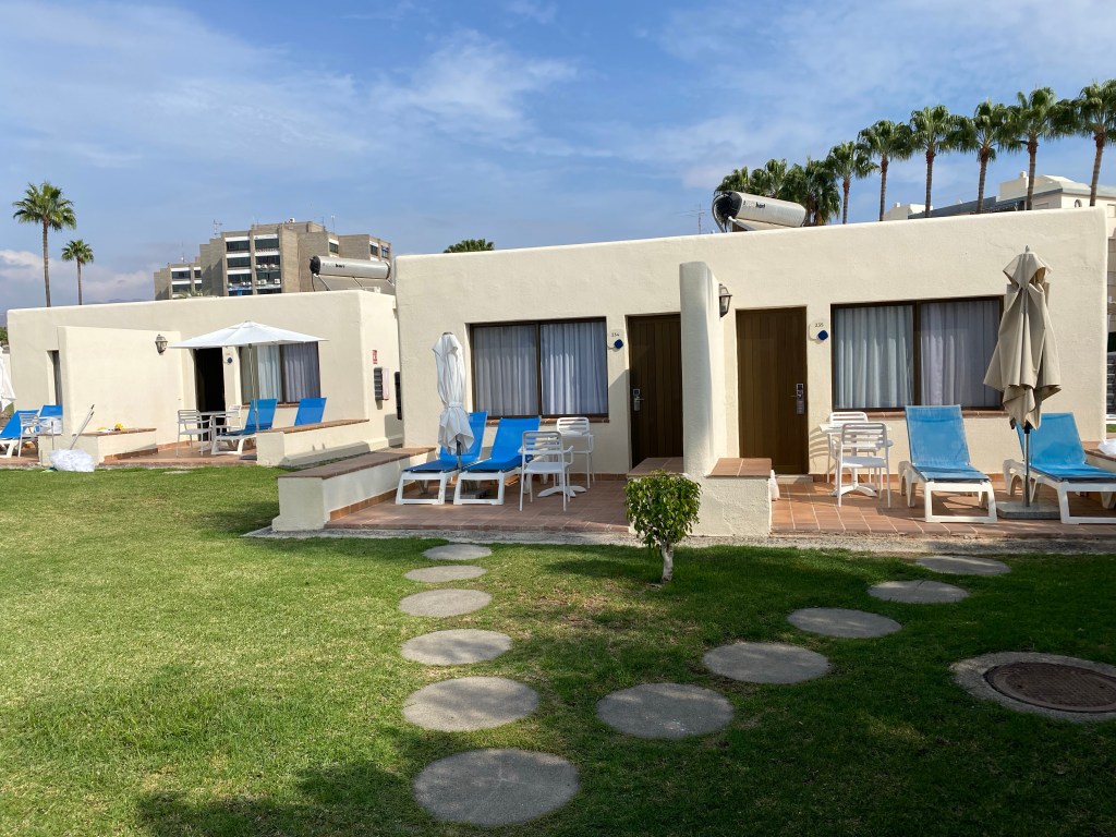 The area upstairs is really nice as it’s right in between the bar and the pools, under cover but little areas of sun. It was perfect for us to sit out and plan our 2022 holidays as we could park Adelaide in the shade with us and enjoy some drinks. The rooms were also great for enjoying our evenings once Adelaide was put to bed, as each of the rooms had a little outside terrace with 2 sun beds and a little table and chairs. If you wanted some peace and quiet away from the Butlins style evening entertainment, your terrace was the perfect spot, as long as you’re happy to walk back and forth to the bar for top-ups. Annoyingly, a couple of our lights didn’t work including our outside one, and despite the ‘please repair’ sign that we hung on the door for 3 days, this never got sorted. We spent many nights playing Uno in the dark, adding an extra level by having to guess the difference between green and blue!