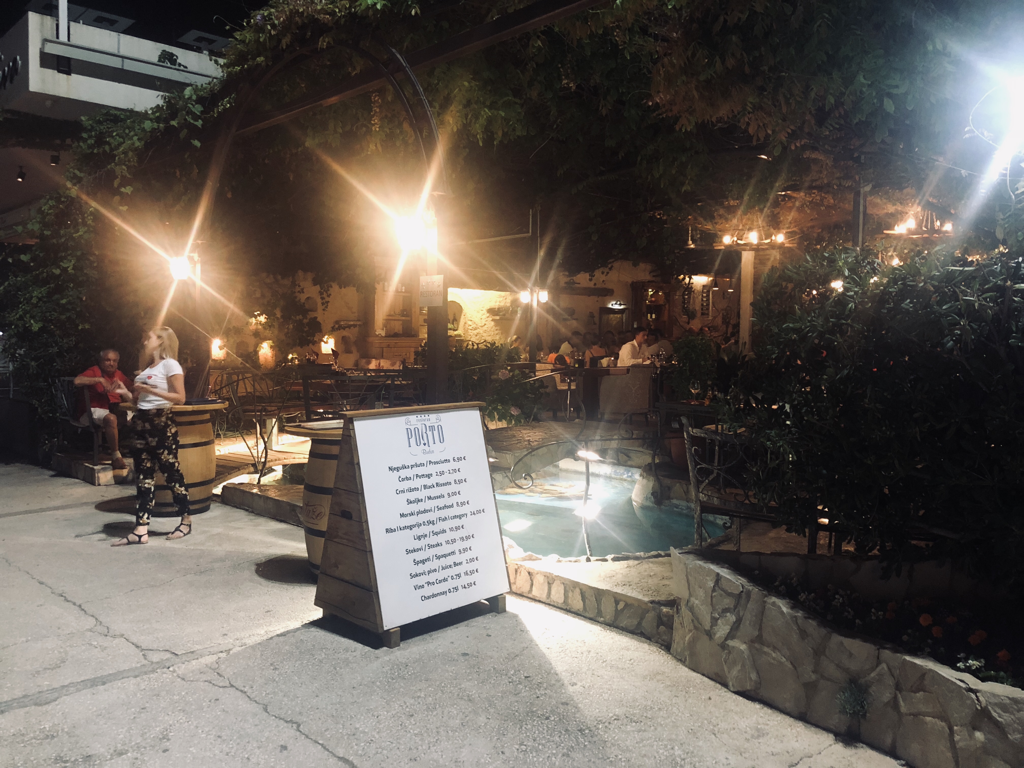 One of the places we went for an evening meal was a restaurant just outside of the Old Town, called Restaurant Porto. It was quite a ‘posh’ place on the waterfront, with lovely mood lighting, but the selling point was the pool of slipper lobsters that swam/scuttled around at the entrance. Again, we were lucky enough to get (what seemed like) the best seats in the house (image and video below). The food was lovely, serving both fish and meat, and we had a really peaceful evening here. Another place we ate whilst in Budva was at Restaurant Astoria, however we did NOT have a good experience here. We saw that it was recommended on Trip Adviser, so we thought it would be the perfect place to end our holiday! I ordered the duck breast with some sort of vanilla sauce (I think it was a special that day as I can’t find it again on the menu), and it was absolutely revolting. Not only was the duck hugely overcooked, but the sauce smelled and tasted like crepes which, believe it or not, really doesn’t go with duck. The rice was cold and all stuck together in one big clump, the vegetables were completely different to that advertised, and Scott’s steak (despite him explicitly telling them he wanted it super rare) came out as tough as leather. This is obviously based entirely on our own experience, and judging by a lot of other reviews, the place in general is meant to be nice, however we wouldn’t go back there!