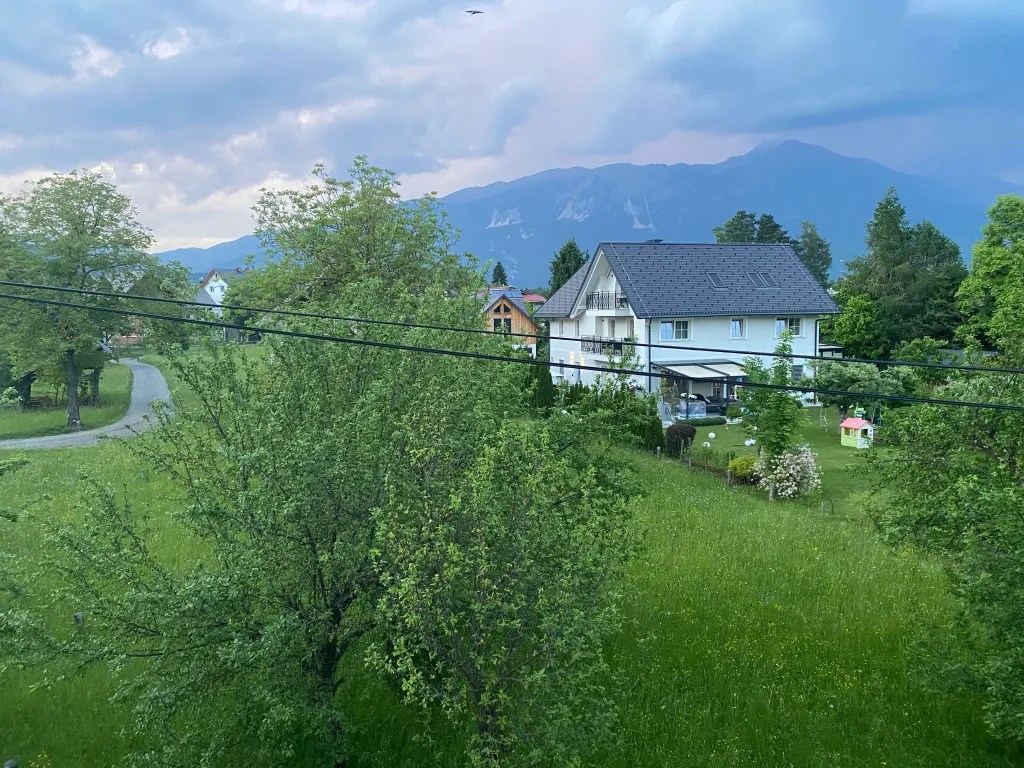 When we stayed here, we hired an AirBnB just tucked away down this really quiet road surrounded by orchards, fields and all sorts of wildlife! It was only a 10/15 minute walk down into the main town, and only 5/10 minutes from a nearby SPAR shop. It had loads of space and a balcony running around 2 sides – perfect for us to sit out on in the evening and watch the thunderstorms around us in the mountains!