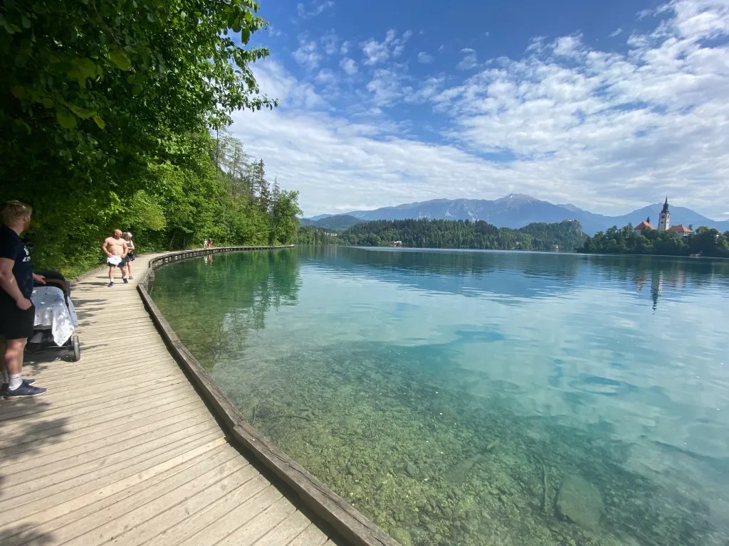 We walked around the lake most days as it’s such a peaceful and beautiful trail. It’s approximately 6km all the way around and takes around an hour and a half to complete at a leisurely pace. We often spent the day circling the lake and stopping off for drinks, lunch and the BEST ice cream place I’ve ever eaten at – Blejska Sladoglednica! It’s right across the road from a huge patch of grass and easy access into the lake, so perfect for a rest halfway around the trail.
